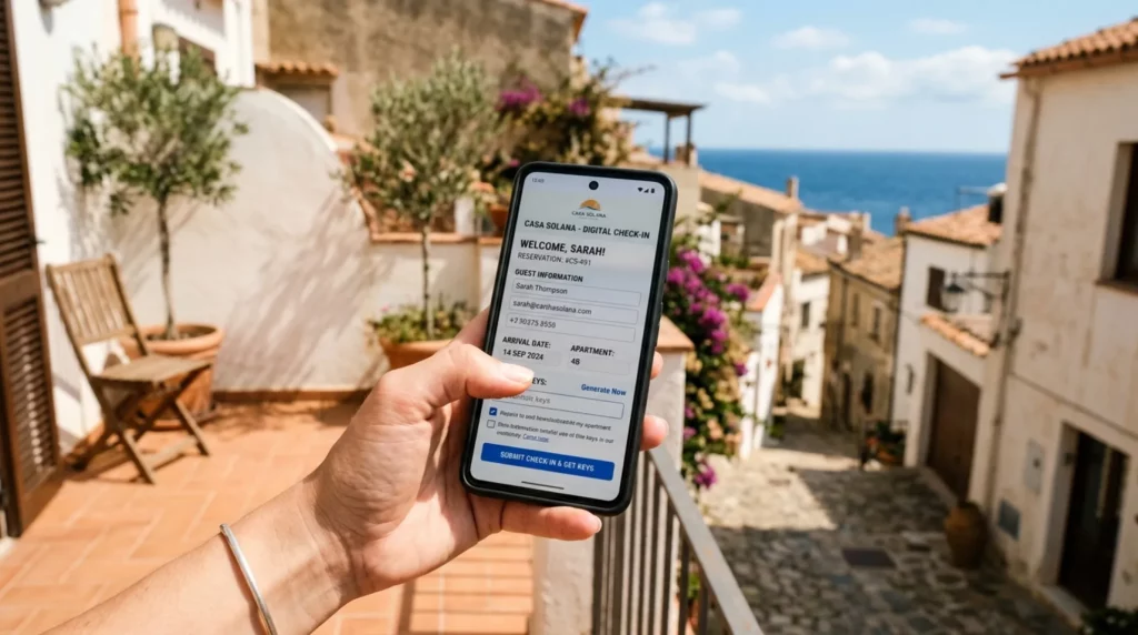 - El huésped completa el check-in online desde el móvil antes de llegar, rellenando todos los campos obligatorios del RD 933/2021