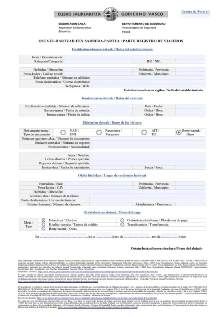 3. Qué datos hay que incluir en el parte de viajeros en el País Vasco