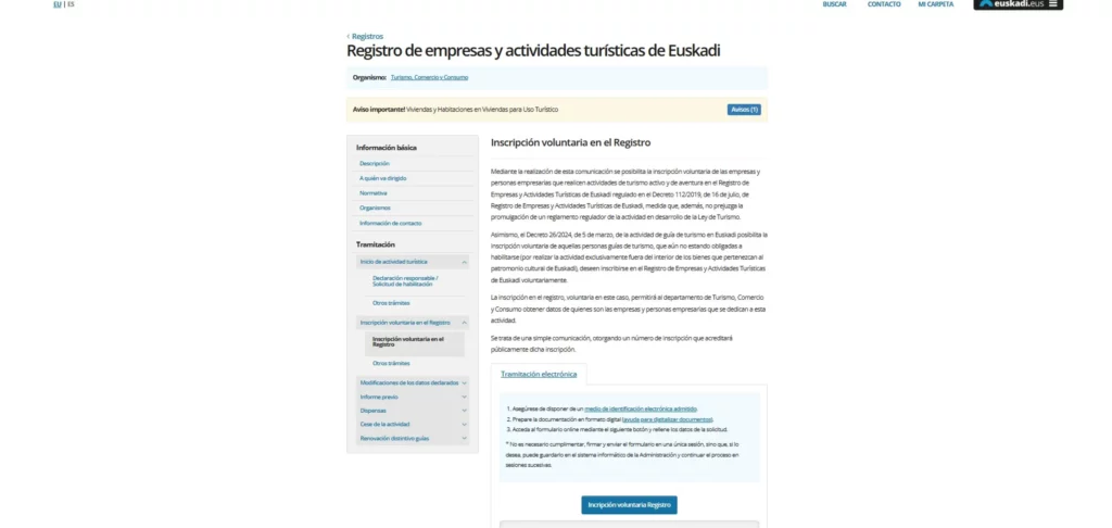⚠️ Si gestionas varias propiedades en el País Vasco, cada establecimiento debe darse de alta por separado. No existe un acceso único que cubra todas tus propiedades a la vez.