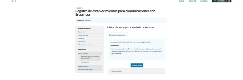 Paso 2 — Date de alta en el sistema de la Ertzaintza
